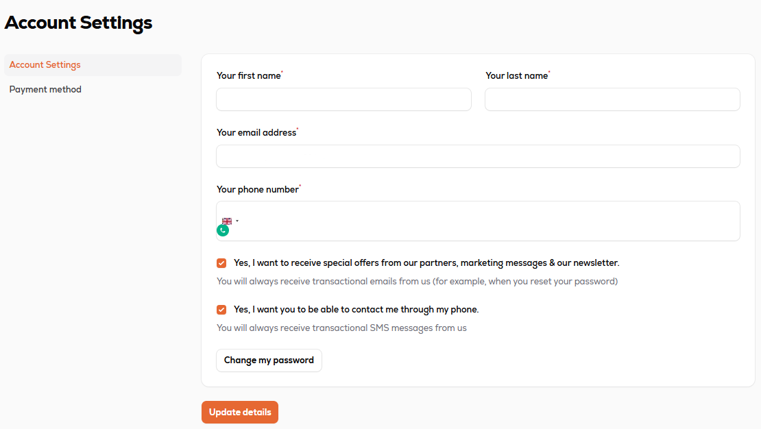 If you notice your new details haven’t appeared after a full working day, please get in touch through your Dashboard and our team will check this for you.