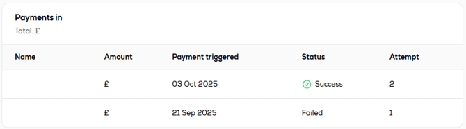 If a payment fails, we will try again. Your Payments In section may show several lines for the same month. Each line shows the status of that attempt so you can see each attempt separately.